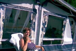 Helga, ganz entspannt beim Frühstück in Millstatt im Sommerurlaub 2009